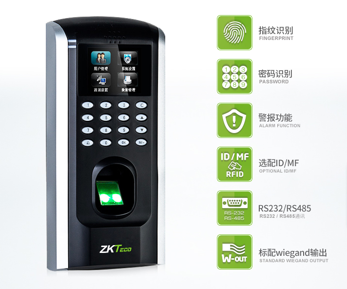 中控智慧(ZKTeco)F7PLUS打卡机 指纹识别考勤门禁一体机